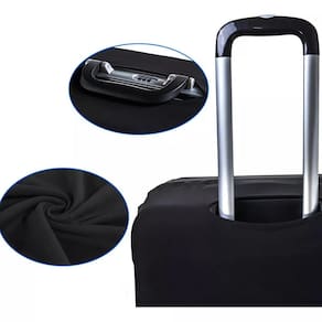 Capa Mala Bagagem Viagem com Ziper Preta Grande 32kg Elastano Para deixar sua viagem mais agradável e protegida a capa para mala é feita de malha com elastano, elas aderem ao produto protegendo e deixando sua mala com visual mais moderno e inovador. Super prático e fácil de utilizar, as capas para mala vêm com um tecido adesivo para facilitar na hora de colocá-la na mala, tamanho variado Disponível em 3 tamanhos P, M e G para se adequar perfeitamente à sua mala, a capa possui um design elegante e versátil na cor preta, que combina com qualquer estilo.