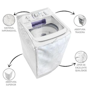 Tamanho: Altura x Largura x Profundidade (105 x 59 x 66) cm / Sendo adicionados 2cm para encaixe e costura. Conteúdo: 1 Capa Lavadora Material: Corino - Revestimento em pvc 100% Poliéster com costura Nylon Marca: Vip Capas Cores: Branca. Fotos: Imagens Meramente Ilustrativas. Garantia (Fabricante): Contra Defeitos de Fabricação. Fabricante: Vip Capas