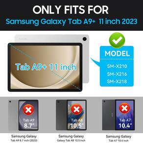 - Modelos compatíveis: exclusivamente projetado para Samsung Galaxy Tab A9+ 11 polegadas versão 2023 (SM-X210/X216/X218). Sem película protetora. Não serve para outros tablets
