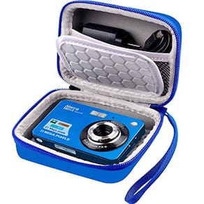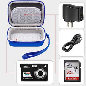 Capa p/ câm. digital 21MP, tela 2,7/, azul c/ tela LCD, recarregável p/ viagens - proteção e transporte