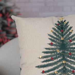 Raízes Natalina, uma coleção que celebra o verdadeiro espírito do Natal: as histórias que vivemos, os laços que construímos e os momentos que guardamos para sempre no coração. Entre o lúdico e o elegante, cada peça foi criada para acolher memórias, conectar gerações e tornar cada ambiente um cenário de afeto e celebração. Com frente em veludo texturizado e verso em veludo liso, esta capa traz o bordado detalhado de uma árvore de Natal tradicional, com acabamentos dourados e toque sofisticado.