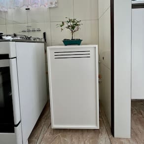 O móvel funciona como um carrinho que se encaixa no botijão de gás, vai com rodízio giratório e rodinhas de gel, 100% MDF com acabamento de fabrica não é MDP nem pintura, proporciona um ambiente Klin e uma bancada extra.