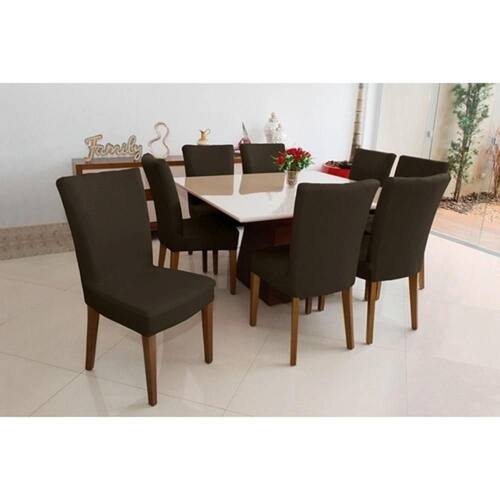 Capa Para Cadeira Lisa Kit 6 Lugares Malha - Marrom