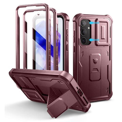 Para maior conveniência, a capa incorpora um suporte dobrável que permite visualização sem usar as mãos nos modos retrato e paisagem. Este suporte oculto também funciona como uma pegada segura para uso com uma mão durante atividades ao ar livre. Recortes precisos garantem acesso total a todas as portas, botões e funções da câmera, mantendo a usabilidade completa sem precisar remover a capa. O acabamento na cor vinho adiciona um toque elegante ao seu dispositivo, oferecendo proteção robusta e funcionalidade versátil.