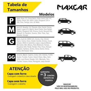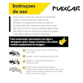 Atenção: a capa não poderá ser usada quando: a pintura do veículo apresentar falta de brilho, falta de verniz, manchas e fundo aparente. Caso a pintura se encontrem qualquer destas condições citadas poderá provocar manchas esbranquiçadas em quase 100% do veículo.