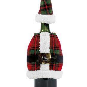 01 unidade Capa Garrafa Paletó e Gorrinho Xadrez Natal 15cm