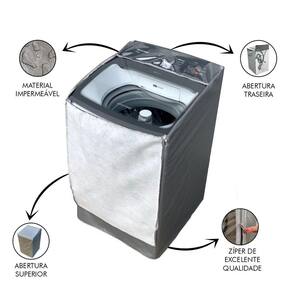 Capa Para Maquina de Lavar Electrolux Led 13 14kg Abertura em Ziper com Painel Transparente Cinza
