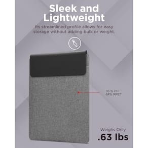 Lenovo Capa fina para notebook/tablet de 16 polegadas - compatível com MacBook Air/Pro - capa leve ecológica com bolso para acessórios e fecho magnético - cinza - Armazenamento ideal do dispositivo: esta capa Lenovo foi projetada para oferecer um invólucro confortável e seguro para seus dispositivos, garantindo que seus pertences permaneçam protegidos durante o transporte. Seja seu celular, tablet, laptop ou dispositivo de jogos, esta capa pode guardar seus eletrônicos com segurança. Medidas: 247 mm x 19,9 mm x 356 mm - Materiais ecológicos: Feito com consciência ambiental em mente, o exterior da manga é feito de 36% PU (poliuretano) e 64% RPET (Tereftalato de Polietileno Reciclado). O interior consiste em 11% poliéster e 89% microfibra imitada, proporcionando um ambiente premium e protetor para o seu laptop. - Elegante e leve: projetada para ser fina e leve, esta capa para laptop oferece uma solução minimalista e elegante para carregar seu dispositivo, e ainda tem um bolso separado para pequenos acessórios e cabos. Seu perfil simplificado permite fácil armazenamento em mochilas, pastas ou sacolas sem adicionar volume ou peso. - Fecho magnético seguro: com um fecho magnético conveniente, a capa para laptop de ajuste fino garante acesso rápido e fácil ao seu dispositivo, mantendo-o firmemente preso quando não estiver em uso. Este fecho magnético oferece segurança e conveniência, tornando fácil abrir e fechar a manga. - Armazenamento organizado: a capa inclui um bolso de acessório separado, permitindo que você armazene pequenos acessórios, carregadores e cabos. Além disso, possui um laço para caneta, oferecendo um espaço designado para manter seus utensílios de escrita à mão. O design cuidadoso mantém seus itens essenciais organizados e facilmente acessíveis.