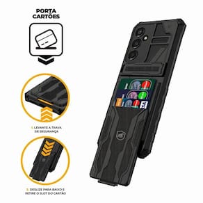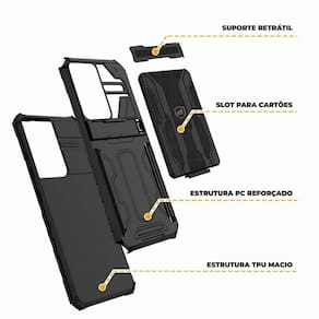 LEIA ANTES DE COMPRAROs fabricantes de smartphones e smartwatches possuem variações de tamanho para cada tipo de produto, geralmente as mudanças de dimensões são acompanhadas pelo tamanho em polegadas ou pelas palavras: PLUS, +, PRO, PLAY, LITE, SE, MM, entre outras, confira antes da compra se seu dispositivo é compatível com o produto anunciado e evite transtornos em sua compra. Qualquer dúvida utilize o campo de perguntas no final da página ou leia as avaliações de outros consumidores. DESCRIÇÃOUse a melhor capa para Samsung Galaxy S24 Ultra A Capa Guardian da Gshield foi desenvolvida para proteger seu aparelho, com a mais alta tecnologia de absorção de impactos, garantindo extrema segurança. Fabricado com um design leve e fino, mas sem perder a segurança de proteção para seu celular.A Guardian possui um encaixe perfeito para adaptar-se totalmente ao seu aparelho; possui uma alça Kickstand, que permite utilizar o celular apoiado na horizontal, além disso, oferece um compartimento exclusivo para guardar seus cartões. ESPECIFICAÇÕESMarca: GshieldMaterial: Poliuretano termoplástico + PC de alta resistência - Não amarelaDimensões: Dimensões exatas do aparelhoCertificações: Us MilitaryCor: Preto COMPATIBILIDADESamsung Galaxy S24 UltraITENS INCLUSOS1x Capa protetoraGARANTIA3 meses contra defeitos de fabricação + Garantia Vitalícia Co-ParticipativaA Gshield não se responsabiliza por eventuais danos provenientes de quedas acidentais e impactos. Aconselhamos para uma proteção completa, a compra do plano de cobertura contra quebras Gorila Care.AINDA TEM DÚVIDAS?Use o campo de perguntas no fim da página ou leia as avaliações de outros consumidores. TAGSPelícula de vidro, película para celular, Película 5D, Capas para celular, Capinhas para celular, Acessórios para celular * Imagens meramente ilustrativas. Selos, ilustrações ou informações que constam na embalagem podem ser diferentes do produto disponível em estoque. COR: ÚNICA