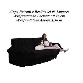 Capa para sofá retrátil e reclinável 3 lugares Cor: preta Capa para sofá retrátil e reclinável 3 lugares Antes de comprar verifique as medidas corretamente A capa fica justinha por ser de malhaNo encarte tem instruções de como colocar a capa Se quiser comprar mais de um item é só adicionar ao carrinho, qualquer duvida nos chame no campo de perguntas. Características técnicas Composição 100% poliéster Largura: 2,30m Altura: 1,10m Profundidade fechado: 95cm profundidade aberto 1,30m Contém 01 capa para sofá retrátil e reclinável 3 lugares Imagem meramente ilustrativa acessórios não acompanha Estamos a disposição Marca: Belcapas