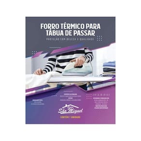 Capa para tabua de passar roupa forro termico passadeira algodão aluminizado Tamanho: 140x50cm Atenção, medidas referente ao tamanho do forro, pegue um forro maior que sua tábua Sobre a capa para tábua de passar roupa - superfície 100% algodão aluminizado térmico refratário, melhor tecido do mercado - base 100% espuma de alta densidade - facilita a ação de passar roupas - superfície aluminizada por processo de espatulágem, com material térmico refratário - mesmo material de luva térmica - anti-chama - retém e reflete o calor - forro acolchoado: aumenta o contato com o ferro de passar - roupas passadas por cima e por baixo de uma só vez Fácil de limpar e usar 1. Coloque o forro térmico com a superfície aluminizada para cima, deixando o forro amoldado na extremidade redonda da tábua. 2. Puxe os cordões para o ajuste final e amarre as pontas por baixo da tábua. 3. Passe um pano bem molhado sobre a superfície do forro térmico para a umidade penetrar na espuma 4. Use o ferro em temperatura menor à que você usa de costume, pois o calor aumenta.