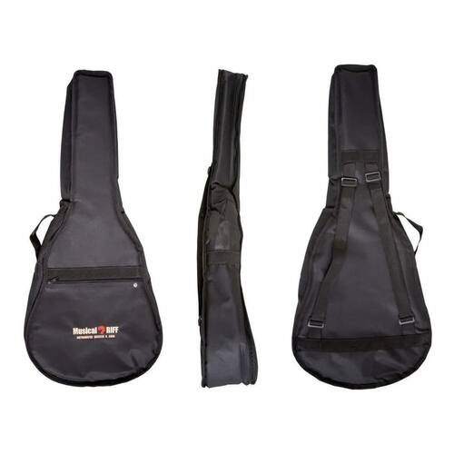 - capa luxo para violão flat musical riff - material: nylon - duas alças para costas e uma alça lateral - com compartimento para acessórios - resistente, com forração interna para proteger o instrumento de batidas, material de qualidade - estampa musical riff - contem 1 capa