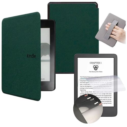Capa com proteção contra quedas e arranhões, função auto-sleep/wake para economia de bateria, design elegante, leve e portátil, interior aveludado. Película de plástico fosco com proteção contra arranhões e sensibilidade ao toque.Características