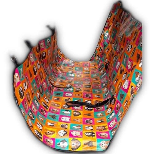 É fácil de usar, basta encaixar e regular as alças nos encostos dianteiros e traseiros para usá-la no banco de trás ou encaixar e regular as duas alças nos encostos traseiros para usar no porta malas e é fácil de higienizar, é só passar um pano úmido. Seu carro ficará sempre limpo, sem pelos, areia, guloseimas etc. Dimensões: 140cm de uma porta a outra x 140cm entre o banco dianteiro e o traseiro