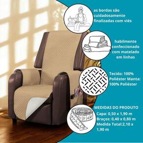 Capa Poltrona 1 Lugar Reversível Manu Matelada Variação: Cáqui e Palha Seja muito bem-vindo a à Atual Ecommerce, loja com mais de 4 anos de confiança nos marketplaces Apresentamos a Capa Protetora de Poltrona 1 Lugar Manu Matelado Dupla Face - o equilíbrio perfeito entre estilo, conforto e funcionalidade. Se você está cansado de ver sua poltrona manchada, desbotada ou fora do tom da sua decoração, essa é a solução ideal. Com um toque de elegância e dois visuais em uma só peça, o modelo Manu vai transformar seu ambiente sem esforço. Clientes recomendam: uso dos dois lados e parece que tenho duas capas diferentes os bolsos são ótimos para deixar controle e livro sempre à mão. minha poltrona antiga parece nova, adorei o acabamento matelado. Especificações Técnicas: 1 capa de poltrona com bolsos Largura do assento: 0,50 m Medidas totais: 2,10 x 1,90 m Braços: 0,40 x 0,80 m costurados à capa Material: 100% Poliéster Composição: Tecido superior e inferior + manta Lavagem: Máquina modo delicado Estrutura matelada losangos Dupla face com cores distintas Bolsos laterais funcionais em um dos braços Acabamento reforçado com viés : 3 meses contra defeitos de fabricação. Compre com segurança e tranquilidade. Não perca Estoques limitados. Agradecemos sua visita em nossa loja. Boas compras