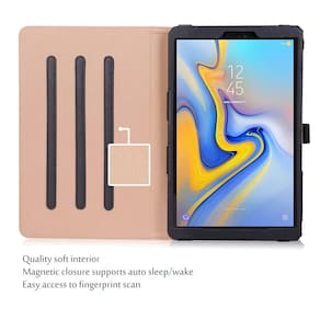 ProCase Capa para Galaxy Tab A 10,5 T590 T595 T597 versão 2018, capa protetora de couro sintético premium para tablet Galaxy Tab A de 10,5 polegadas com vários ângulos de visualização, hibernar automático, despertar - preto - Capa protetora Folio para Galaxy Tab A 10,5 polegadas SM-T590/ T595/ T597 lançado em 2018 (verifique o número do modelo do dispositivo SM-T*** na configuração antes da compra, não é compatível com outros dispositivos) - Design clássico e profissional, construção sólida; acesso total a todos os recursos (câmeras, alto-falante, portas e botões) - O exterior de couro de composição premium e o interior macio oferecem ótima proteção contra o uso diário - Suporta função hibernar/despertar automática; vários ângulos de visualização horizontal; fecho magnético protege a capa - Suporte de caneta stylus elástico embutido, conveniente para manter sua caneta stylus à mão
