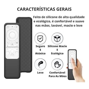 Contém: - 1 Capa para controle remoto Samsung 2023 BN59-01432A / BN59-01432B / TM2261S - 1 Alça de pulso