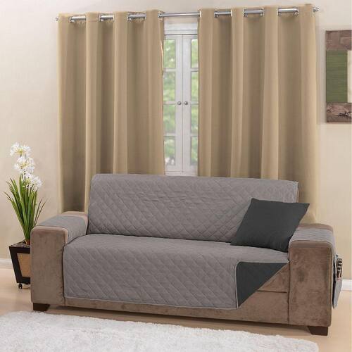 Capa Protetor de Sofá 3 Lugares Manu Dupla Face Assento 1,50m Cinza e Preto Além de manter seu sofá novo e limpo por mais tempo, as capas de sofá também são grandes aliadas na decoração, podendo ser combinadas com cortinas, tapetes e capas de almofada. - IMPORTANTE: Para comprar a capa certa, meça os assentos dos seu sofá entre os braços apenas o assento, sem os braços e essa será a medida correta. Contém na embalagem:1 capa para sofá de 3 lugares - Ideal para sofás com 1,50m de largura de assento Medidas:Capa: 1,90m alt x 1,50m largBraço: 80cm x 40cm porta objetos no braço do lado direito - Veste sofás com as seguintes medidas aproximadas:- Altura total do sofá: 97cm- Profundidade do assento: 55cm- Largura máxima do assento: 1,50m- Altura máxima do encosto: 70cm- Largura máxima do braço: 27cm- Altura do assento: 50cm - Tecido e composição: microfibra 100% poliésterEnchimento: 100% poliésterAcabamento: Viés - - Capa matelada em costura- Esse modelo NÃO é impermeável Foto ilustrativa, tonalidade da cor no produto real pode variar um pouco. Produtos fabricados em Ibitinga-SP, a Capital Nacional do Bordado e do Enxoval. Qualidade é a nossa tradição Marca: Bordando Enxovais