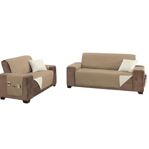 Capa Protetor de Sofá 2 e 3 Lugares Manu Dupla Face Assento 1,10m e 1,50m Palha e Cáqui Além de manter seu sofá novo e limpo por mais tempo, as capas de sofá também são grandes aliadas na decoração, podendo ser combinadas com cortinas, tapetes e capas de almofada.