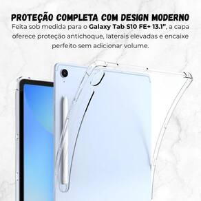 Capa protetora borda reforçada para samsung s10fe+ 13.1 x620 Cor: transparente Capa anti impacto é altamente eficaz contra quedas e impactos. Em caso de acidente, as bordas reforçadas da capa são as primeiras a absorver o choque, minimizando os danos e protegendo o seu tablet de trincas e amassados. ------------------ ------------------ Posso usar a capa com película R: sim a capa é totalmente compatível com películas de vidro. Você pode usar os dois juntos sem interferências. A película não está inclusa neste anúncio. Como a case transparente com borda reforçada protege R: a estrutura é feita em tpu flexível, com cantos reforçados e absorção de impacto, oferecendo excelente proteção contra quedas acidentais, riscos e amassados. Essa capa é compatível com qual tablet R: essa capa é compatível com o tablet samsung s10 fe+ 13.1, modelos x620 e x625. Quais outros benefícios essa case proporciona R: além da segurança contra danos físicos, ela é leve, fácil de encaixar e não interfere no acesso a botões, entradas ou na usabilidade do tablet. ------------------ Especificações ------------------ Peso: 15g Material: tpu flexível e resistente Compatível com tablet samsung s10 fe+ 13.1 polegadas x620 x625 ------------------ Conteúdo ------------------ 1x capa borda reforçada. Anúncio referente a case Acessórios que ambientam as fotos não inclusos. ------------------ Apresentação: ------------------ - qualidade garantida. - atendimento qualificado. - enviamos para todo o brasil. - compra garantida. - despachamos em até 1 dia útil após confirmação do pagamento Garantimos a devolução por arrependimento em até 7 dias, após o recebimento e de 15 dias contra defeitos de fabricação. Marca: Não Informado