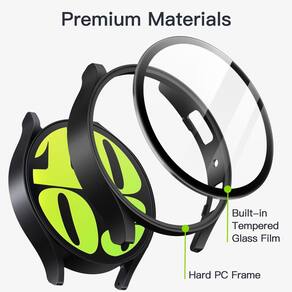 Samsung Galaxy Watch 6 44 mmCapa JeTech com protetor de tela compatível com Samsung Galaxy Watch 6 44 mm, capa protetora geral, película de vidro temperado embutida de alta sensibilidade, pacote com 2 unidades (preta)