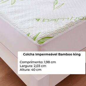 Protetor De colchão King Bamboo ImpermeávelVocê sabia que passamos cerca de um terço de nossas vidas dormindo Uma boa noite de sono é essencial para o nosso bem-estar físico e mental. E para garantir que suas noites sejam de total conforto e higiene, apresentamos o Protetor de Colchão Impermeável Bamboo King CamesaMedidas:Larg: 1,98cmCompr: 2,03cmAltu: 40 cmPeso: 1,430kgDurabilidade e proteção incomparáveis:O Protetor de Colchão Impermeável Bamboo King Camesa é confeccionado com materiais de alta qualidade, garantindo durabilidade e resistência ao longo do tempo. Com sua camada impermeável, você protegerá seu colchão contra líquidos, manchas, ácaros e odores indesejáveis. Sua superfície em tecido de bambu é macia ao toque e proporciona uma sensação agradável durante o sono.Ajuste perfeito e facilidade de uso:Com dimensões ideais para colchões king-size, o Protetor de Colchão Impermeável Bamboo King Camesa se adapta perfeitamente ao seu colchão, garantindo uma cobertura completa e segura. Seu elástico em toda a volta proporciona uma instalação rápida e fácil, evitando que o protetor se desloque durante a noite.Higiene para sua saúde e bem-estar:A saúde é nosso bem mais precioso, e a higiene do nosso ambiente de descanso é essencial para uma vida saudável. O protetor de colchão é uma barreira eficaz contra ácaros, bactérias e fungos, responsáveis por alergias e problemas respiratórios. Com o Protetor de Colchão Impermeável Bamboo King Camesa, você garante um sono tranquilo e seguro, protegendo sua saúde e a de toda a sua família.Fácil manutenção:A limpeza do Protetor de Colchão Impermeável Bamboo King Camesa é muito simples. Basta remover o protetor do colchão e lavá-lo na máquina, seguindo as instruções do fabricante. Dessa forma, você terá sempre um ambiente limpo e saudável para o seu descanso.Proteja seu investimento:Investir em um colchão de qualidade é importante, e o Protetor de Colchão Impermeável Bamboo King Camesa ajuda você a prolongar a vida útil do seu colchão, evitando danos que poderiam reduzir sua durabilidade. Com essa proteção extra, você economiza a longo prazo, garantindo o melhor retorno para o seu investimento.Não perca mais tempo Cuide do seu sono, da sua saúde e do seu colchão com o Protetor de Colchão Impermeável Bamboo King Camesa