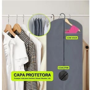 Nossa capa protetora é perfeita para você proteger seu vestido ou qualquer roupa que queira de elementos como poeira, ácaros e sujeiras indesejadas.Além de manter sua roupas sem amassados é uma ótima escolha para você que precisa de proteção e organização no seu guarda roupas.
