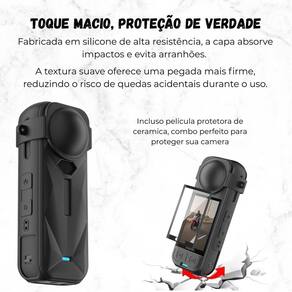 Capa protetora de silicone para câmera insta360 x5 +película Cor: preto mantenha sua insta x5 360 2025 segura e estilosa com a nossa capa de silicone premium diga adeus a arranhões e quebras nossa capa de silicone não só protege sua câmera contra danos, como também oferece uma textura suave e agradável ao toque. Mantenha sua câmera impecável e pronta para capturar os melhores momentos, sem comprometer o estilo. instalação em instantes e proteção que faz a diferença. Com cortes precisos, você terá acesso fácil a todos os botões e funcionalidades, garantindo que nada atrapalhe sua experiência de uso. não perca a oportunidade de manter sua insta 360 x5 2025 protegida e funcional. Compatível exclusivamente com a insta 360 x5 modelo 2025 . Não serve em versões anteriores como x3 ou x4. ------------------ ------------------ a capa de silicone protege minha câmera contra quedas R: sim, a capa de silicone protege sua insta x5 360 2025 contra arranhões, pequenas quedas e impactos, mantendo sua câmera segura e em perfeitas condições. a capa interfere no uso dos botões e funcionalidades da câmera R: não, a capa possui cortes precisos que garantem acesso fácil e total a todos os botões, portas e funcionalidades da câmera, sem comprometer o desempenho ou a usabilidade. o silicone da capa deixa a câmera escorregadia R: não, o silicone utilizado na capa tem uma textura suave, mas ao mesmo tempo oferece uma boa aderência, garantindo que a câmera permaneça firme em suas mãos. a capa é compatível com outros modelos da insta360 R: não, este modelo é compatível exclusivamente com a insta360 x5 modelo 2025 . Não serve nos modelos x4, x3 ou anteriores. posso usar a capa com bastões, tripés ou suportes R: sim a parte inferior da capa permite encaixe com bastões de selfie, tripés e acessórios compatíveis com a x5. a capa é fácil de instalar R: sim, é super simples de colocar e remover. O silicone é flexível e se ajusta perfeitamente ao corpo da câmera. ------------------ Especificações ------------------ Cortes precisos Material: silicone de alta qualidade Proteção: contra arranhões, quedas e impactos Altura: 13 cm Largura: 5 cm Espessura: 2,6 cm Compatível exclusivamente com a insta360 x5 modelo 2025 . Não serve em versões anteriores como x3 ou x4. ------------------ Conteúdo ------------------ 1x case silicone. 1x película. 1x kit limpeza. Anúncio referente a case Acessórios que ambientam as fotos não inclusos. ------------------ Apresentação: ------------------ - qualidade garantida. - atendimento qualificado. - enviamos para todo o brasil. - compra garantida. - despachamos em até 1 dia útil após confirmação do pagamento Garantimos a devolução por arrependimento em até 7 dias, após o recebimento e de 15 dias contra defeitos de fabricação. Marca: Não Informado