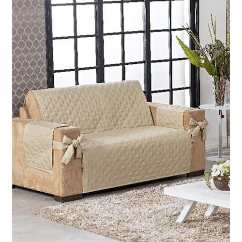 Capa protetora de sofá 2 lugares com porta controle e laço avelã Protetor de sofá 2 lugares face única com laço