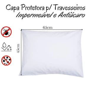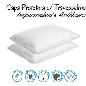 Capa Protetora para Travesseiro Impermeável e Antiácaro com Zíper Os especialistas explicam que os itens antiácaros impermeáveis são o que impede o contato dos ácaros e seus dejetos, protegendo os tecidos e que ficam na parte interna do travesseiro e colchão. Com isso impede a proliferação dos ácaros e evitando alergias. Tecido Macio Pratico Antiácaro Composição 100% polipropileno 100% Polietileno forro Medida: 65cm x 45cm