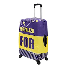 Evite arranhões, sujeira e danos na sua mala com esta capa protetora de elastano, ideal para malas grandes (até 32 kg). Com estampa exclusiva de Fortaleza (For), ela traz um toque de personalidade à sua bagagem enquanto protege com eficiência. O tecido elástico facilita o encaixe, e o fechamento com fita dupla face e cinta elástica inferior garante segurança durante todo o trajeto.