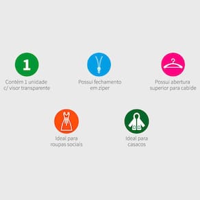 A Capa Protetora Vizapi Exclusive 150x55cm Branco Cinza é ideal para quem busca por um produto de qualidade superior e maior durabilidade, com a finalidade aumentar o nível de proteção das roupas mais valiosas e delicadas do seu armário, com abertura na parte superior, a capa permite o uso de cabide, possui visor transparente que facilita a identificação e fechamento em zíper para facilitar a armazenagem e o transporte. Cabide adquirido separadamente. Ideal para roupas sociais, casacos, vestidos, macacão, casaco 7/8, trench coat, sobretudo, manteau e etc.
