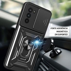 Com a Capa Capinha Case Motorola Moto G42 - Protetora Militar, você também poderá contar com algumas funcionalidades extras. Ela possui um anel de dedo e um metal embutido, que permitem aderir a capa em um imã, facilitando o uso do seu smartphone em suportes magnéticos. Além disso, o anel ajustável da capa pode ser utilizado como base, proporcionando uma melhor visualização da tela.