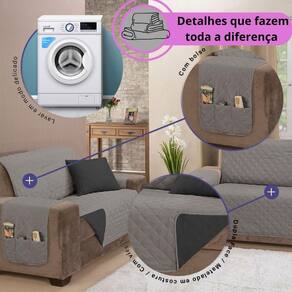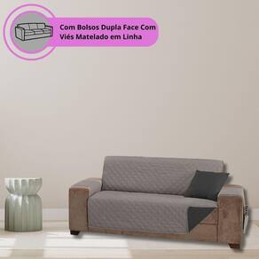 Capa Protetora de Sofá King 3 Lugares Manu Matelado Dupla Face Variação: Cinza e Preto Protetor de Sofá Manu 3 Lugares King - Dupla Face, Estilo Matelado com Bolsos Laterais Renove a decoração da sua sala com o Protetor de Sofá Manu 3 Lugares King, um modelo elegante e funcional, perfeito para quem busca proteção, estilo e praticidade no dia a dia. Com design reversível e acabamento matelado em losangos, ele é a combinação ideal de versatilidade e sofisticação. Dupla Face - 2 Cores em 1 Produto Transforme o ambiente sempre que desejar A capa de sofá Manu é reversível, com cores distintas em cada lado, permitindo que você altere o visual da sua sala de forma rápida e prática. Design Matelado Elegante Com costuras em linha que formam desenhos de losangos, o protetor traz um visual moderno e requintado, elevando o estilo do seu estofado. Bolsos Laterais Funcionais Porta-Objetos Conta com bolsos estrategicamente posicionados em um dos braços, ideais para armazenar controles, livros, revistas ou pequenos itens do dia a dia. Os bolsos permanecem funcionais em qualquer lado da capa. Acabamento com Viés - Mais Durabilidade e Estilo O acabamento reforçado com viés nas bordas garante um toque de elegância e maior resistência ao uso contínuo. Medidas Aproximadas Largura x Altura : Capa Principal: 1,80 m x 1,90 m Braços costurados à capa : 0,40 m x 0,80 m cada Medida total com braços: 3,40 m x 1,90 m Importante: Meça a largura do assento do seu sofá de braço a braço, sem incluir os braços para garantir o encaixe ideal. Composição do Material: Tecido Superior e Inferior: 100% Poliéster Manta Interna: 100% Poliéster Características: dupla Face reversível com Bolsos porta-objetos acabamento com Viés matelado em Linha lavável em Máquina modo delicado Informações Importantes: Os bolsos estão presentes em apenas um dos braços, variando entre o lado direito ou esquerdo conforme o lote. As cores podem sofrer variações de tonalidade devido à iluminação da foto e ao monitor. A imagem pode ilustrar outro tamanho do produto - verifique sempre as medidas na descrição. Conteúdo da Embalagem: 1 Protetor de Sofá Manu 3 Lugares King com Bolsos : contra defeitos de fabricação. Marca: Não Informado Ean: 7900413969372