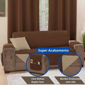 Capa Protetora de Sofá King 4 Lugares Manu Matelado Dupla Face Variação: Cáqui e Marrom Bem-vindo à Atual Ecommerce Se você procura unir bom gosto e praticidade na proteção dos seus móveis, está no lugar certo. Nossa linha de capas protetoras vai transformar a sua sala com estilo e funcionalidade. Apresentamos a Capa Protetora de Sofá King 4 Lugares Manu Matelado Dupla Face Um toque de elegância com proteção total para seu estofado Seu sofá vive exposto a sujeira, manchas ou pelos de pets O modelo Manu resolve esse problema com um design moderno, funcional e versátil. A capa oferece dupla face, matelado com costuras em losangos, bolsos laterais e acabamento em viés. Tudo isso pensado para deixar seu ambiente mais bonito e prático. Veja como outros clientes já transformaram seus lares: fiquei encantada com a qualidade A costura é linda e o tecido resistente. troco de lado toda semana É como se tivesse duas capas. os bolsos são muito úteis. Agora o controle não some mais Especificações Técnicas: Modelo: Manu King Matelado Medidas: Assento: 2,40 m Capa: 2,40 x 1,90 m Braços: 0,40 x 0,80 m Total com braços: 4,00 x 1,90 m Composição: Tecido superior e inferior: 100% Poliéster Manta interna: 100% Poliéster Diferenciais: Matelado em linha com desenho de losangos Dupla face com duas cores Bolsos laterais porta-objetos Acabamento com viés Lavável à máquina modo delicado Observações: Os bolsos estão presentes em apenas um dos braços. As cores podem variar de acordo com o lote ou monitor. Verifique sempre as medidas na embalagem. de 3 meses contra defeitos de fabricação Compre com total confiança e tranquilidade. Não perca a chance de renovar seu ambiente com estilo e proteção Agradecemos sua visita à Atual Ecommerce. Conte conosco para transformar sua casa O que o cliente vai receber: 1 Capa Protetora de Sofá King 4 Lugares Manu Matelado Dupla Face Marca: Não Informado
