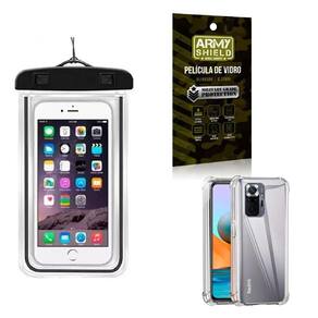 Conteúdo da embalagem: 1x - capinha bolsa prova d'água para celular impermeável. 1x - cordão para pescoço.