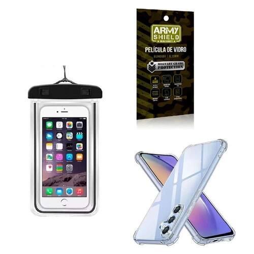 Utilize seu celular em qualquer lugar sem medo de molhar ou danificar o mesmo. Tire fotos, grave vídeos e utilize o touch normalmente, sabendo que seu aparelho está protegido contra água e sujeira dentro da bolsa. Tudo isso, contando com a praticidade de poder utilizar a capinha com cordão para pescoço. Características: - compatível com todos os celulares de até 7.2 polegadas. - cordão para pendurar no pescoço. - impermeável. - preservada a sensibilidade do touch. Obs: a qualidade das fotos dependerá da qualidade de sua câmera, iluminação, dentre outros fatores, uma vez que o material da bolsa é transparente e não influência na mesma. Teste a ser feito antes de utilizar o acessório: - coloque um pedaço de papel dentro da bolsa e feche a mesma. - mergulhe em uma bacia com água e espere de 5 a 10 minutos. - retire o papel, esse tem que estar seco. Não nos responsabilizamos pelo uso incorreto da bolsa. Compatibilidade: para aparelhos de até 7 polegadas. Tamanho máximo comportado: altura - 18cm / largura - 10cm. Conteúdo da embalagem: 1x - capinha bolsa prova d'água para celular impermeável. 1x - cordão para pescoço. -------------- película de vidro 3d blindada - armyshield a película de vidro 3d para celular é um produto de alta qualidade que oferece proteção e estilo para o seu dispositivo móvel. Feita de vidro temperado de alta resistência, a película é projetada para se encaixar perfeitamente na tela do seu celular, proporcionando uma cobertura completa e proteção contra arranhões, rachaduras e outros danos. -------------- capinha silicone anti impacto anti shock transparente - armyshield a capa de celular antishock é um produto de alta qualidade que oferece proteção e estilo para o seu dispositivo móvel. Feita de material de tpu poliuretano termoplástico de alta resistência, a capa é projetada para absorver impactos e proteger o seu celular contra quedas, arranhões e outros danos. A capa antishock transparente é especialmente projetada para se encaixar perfeitamente no seu celular, proporcionando uma cobertura completa e proteção para todas as partes do dispositivo. Ela é transparente, permitindo que você exiba a beleza do seu celular sem comprometer a proteção. Ean: 7898945629720