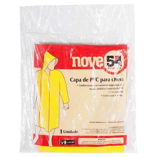 Capa de segurança confeccionada em pvc laminado, com capuz e mangas, fechamento em botões de plásticos características do produto: - marca: nove54; - material: pvc laminado; - tamanho: gg; - cor: amarela; - tipo: com capuz e manga. Dimensões do produto: - comprimento: 1,07m; - espessura: 0,022mm.Imagens meramente ilustrativas, os objetos que ambientam as imagens não acompanham o produto Marca: Não Informado Ean: 7893946515348