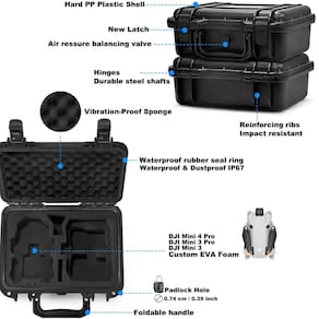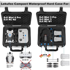 Lekufee Capa rígida pequena à prova d'água compatível com DJI Mini 4 Pro Drone e DJI Mini 4 Drone Acessórios (apenas capa) (não para DJI RC 2) - ?Design personalizado?A capa à prova d'água Lekufee inclui espuma personalizada projetada para drone DJI Mini 4 Pro/DJI Mini 3 Pro/Mini 3. Comporta 1 drone DJI Mini 4 Pro, 3 baterias DJI Mini 4 Pro Plus [inclui bateria interna do drone], 1 DJI RC-N2 [apenas], 2 cartões MicroSD, 3 cabos RC, 2 hélices DJI Mini 4 Pro (par) e 2 varas de controle DJI RC-N2 (par). - ?Qualidade da carcaça?O estojo de transporte DJI Mini 4 Drone é feito de plástico PP rígido, à prova d'água e à prova de poeira, resistente a impactos, anticolisão, protege seu drone DJI Mini 4 Pro e acessórios ao viajar e transportar. Equipado com 2 travas de pressão e puxar, 1 válvula de equilíbrio de pressão de ar, 1 alça ergonômica, 2 furos para cadeado e anel de vedação à prova d'água antienvelhecimento, adequado para transporte em viagens. - ?Proteção interna?A capa rígida DJI Mavic Mini 4 é preenchida com esponja macia antivibração e espuma personalizada pré-cortada, inodora, antivibração e fácil de limpar. Mantenha seu acessório de bateria drone dji mini 4 pro seguro, evite tremores e arranhões durante o transporte. - ?Viagem e armazenamento?Peso: 2,4 Ib (1,1 kg), Dimensões externas (C x L x A): 10,8 x 8,8 x 4,3 polegadas (27,5 x 22,5 x 11 cm). Leve e compacto. Cabe facilmente em uma mochila ou bagagem. Você pode carregá-lo em avião, barco, motocicleta, etc. Adequado para ambientes externos como desertos, praias, florestas tropicais, montanhas de neve, etc. Esta capa à prova d'água dji mini 4 pro combo é ideal para viagens ou armazenamento doméstico. - ?Serviço de qualidade?Você pode obter: 1 x estojo de transporte rígido Lekufee Nossa garantia de 12 meses sem preocupações/devolução/reembolso; é uma compra completamente sem riscos; se você tiver alguma dúvida, sinta-se à vontade para entrar em contato conosco. [Apenas bolsa e estojo]