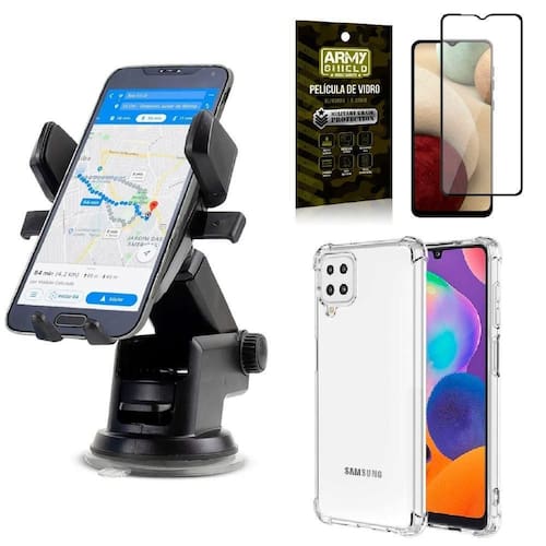 Capa samsung a12 + suporte veicular automatic + película 3d
