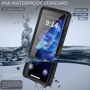 Capa para Samsung Galaxy S25 Ultra, [protetor de tela embutido] [IP68 à prova d'água à prova de poeira] [compatível com MagSafe] Capa protetora subaquática robusta para Galaxy S25 Ultra 5G - preta - Certificação IP68 à prova d'água: capa à prova d'água perfeita compatível com Samsung Galaxy S25 Ultra 5G, extremamente segura mesmo após 1000 testes de uso debaixo d'água de 2 metros por 1 hora. - Proteção total do corpo: impermeável, à prova de choque, à prova de poeira, o design totalmente selado excede o padrão militar para adaptar qualquer atividade ao ar livre; Com uma alça de telefone para transporte conveniente. - Alta resposta ao toque: a película de plástico HD integrada evita arranhões, danos e sujeira, também não afeta a sensibilidade ao toque; a capa traseira transparente mostrará a beleza do seu Samsung S25 Ultra 5G. - Compacto e leve: o material TPU com moldura de plástico rígido torna seu telefone leve e resistente; o corpo fino (17,6 x 8,6 x 1,4 cm) não adiciona muito ao tamanho do seu Galaxy S25 Ultra 5G. - Fácil instalação: O design de encaixe de duas capas (frontal/traseira) torna rápido e fácil de instalar ou tirar em segundos, adequado para uso diário.
