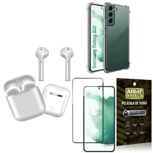 Kit Capinha AntiShock Transparente + Película de Vidro 3D + Fone de ouvido Bluetooth TWS A gold