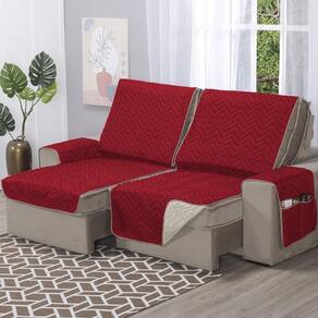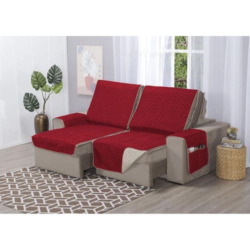Capa de Sofá Retrátil Protetor 3 Lugares 1,80m de Assento Dupla Face Duas Cores Cor: Vermelho e avelã bege Além de manter seu sofá limpo e novo por mais tempo, os protetores de sofá são grandes aliados na decoração, pois você pode combinar com cortinas, tapetes, capas de almofada e itens decorativos. Também são ideais para quem tem pets que adoram tirar um cochilo no sofá.