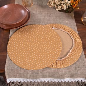 Monte sua mesa de Páscoa com estilo usando o Kit Capa Sousplat + Suporte MDF. Com um diâmetro de 35cm, as capas em 100% poliéster oferecem elegância e durabilidade. O suporte MDF complementa a decoração, proporcionando um toque refinado. Celebre a Páscoa com este conjunto encantador, criando um ambiente acolhedor e festivo à sua mesa.