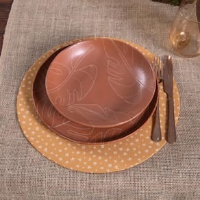 Informações Específicas: - Elegância: As capas Sousplat em 100% poliéster proporcionam um toque sofisticado, elevando a estética da sua mesa de Páscoa - Versatilidade: Com 35cm de diâmetro, o kit é adequado para diferentes tamanhos de pratos, conferindo um ajuste perfeito e equilibrado - Durabilidade: Fabricado em 100% poliéster, o material garante durabilidade e resistência, tornando o conjunto uma escolha prática e de qualidade - Suporte MDF: O suporte MDF suporte sólido a peça