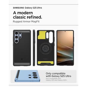 Robusta refinada. A Rugged Amor celebra mais de uma década de proteção com um novo design compatível com o Galaxy S25 Ultra. Os detalhes modernos de fibra de carbono brilham elegantemente com proteção contra choques em várias camadas em todos os cantos. Agora com MagFit para desbloquear novos acessórios magnéticos para Galaxy. Esteja sempre pronto para dar um soco. - [Carregamento rápido sem fio] Esta capa é compatível com carregador sem fio Qi2 - Spigen As capas magnéticas projetadas para a série S25 podem não ser totalmente compatíveis com carteiras MagSafe projetadas para iPhone. - Bordas elevadas para proteção de tela e câmera - Proteção extra nos cantos infundida com tecnologia de proteção extrema - Capa para Galaxy S25 Ultra compatível com Galaxy S25 Ultra