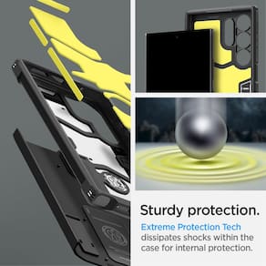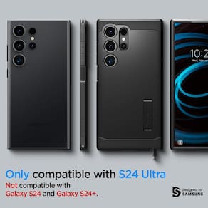 Capa Spigen Tough Armor projetada para Galaxy S24 Ultra (2024) [Suporte] [Proteção de nível militar] - Preta - Feita de PC, TPU e espuma de impacto para maior durabilidade - Proteção de nível militar via Extreme Protection Tech - Suporte embutido para visualização sem usar as mãos - Bordas elevadas para proteção de tela e câmera - Compatível com S Pen, carregamento sem fio e PowerShare