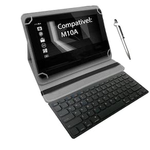 Capa com mini teclado para tablet m10/ m10aCompatível com tablet m10/ m10aEspecificações da capa:- compatível com tablet de 10 polegadas- fecho elástico em poliéster e elastodieno- garras ajustáveis de pressão para fixação precisa do seu tablet- qualidade e durabilidade com excelente acabamento- design moderno, leve, durável, proporcionando proteção para seu tabletObs: a capa não possui furação para câmera traseiraObs : a cor do mini teclado pode ser branco ou preto de acordo com a disponibilidade em estoqueCores disponíveis:- escolha a cor antes da compra clicando na cor disponível de preferência..:: aviso importante - leia com atenção ::.O tablet que aparece na foto é apenas ilustrativo, deixando claro que o produto anunciado é a capa.Conteúdo da embalagem:- 01 capa para tablet m10/ m10a- 01 mini teclado- 01 canetinha touch com uma ponta de espuma para toques na tela e outra ponta esferográfica para escrita em papel