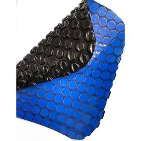Especificações:Capa térmica para piscina atco 330 micras bolhas pretas e parte lisa azulA capa térmica para piscina é um produto especial para piscinas com ou sem sistema de aquecimento. Indicada para proteção e conservação da piscina, a capa possui um shape com bolhas redondas que aumentam o isolamento térmico, reduzindo em até 75% as perdas de calor em uma piscina aquecida.Para piscinas arredondadas a capa vai retangular, podendo ser ajustado com tesoura ou estilete no espelho da piscinaO aquecimento proporciona a passagem de energia solar, esse calor é potencializado pela capa e serve como uma tampa para aquecer a água da piscina, pois a capa tem a função de uma camada isolante do calor aumentando a temperatura da água em até 8 °c, com isso os custos de aquecimento da piscina podem ser reduzidos em até 50 % . =======================================================================Utilização e cuidados:E o lado liso voltado para cima;Não é preciso nenhum tipo de alvenaria;Manter o ph da água entre 7,2 e 7,8;Manter o residual de cloro livre entre 1,03 e 3,0 ppm;Em caso de tratamento de choque com cloro, remover a capa e retomar seu uso somente após a estabilização do nível ideal de cloro 1,0 a 3,0 ppm;Ao retirar a capa da piscina nunca deixe ao sol, mesmo por curtos períodos;Quando utilizar enrolador de capa para descobrir a piscina ,desloque -o para uma área de sombra ou cubra a capa com um protetor;Quando remover a capa, evite atrito das bolhas com as bordas da piscina