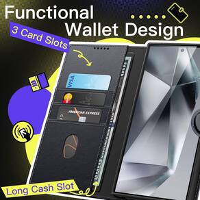 — [proteção geral] projetada para Samsung Galaxy S24 Ultra 5G. A capa de couro PU e a parte traseira interna de TPU flexível protegem seu dispositivo contra arranhões, choques e solavancos. Materiais premium garantem uma aderência confortável